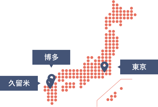 年々国内での拠点を拡大しています。 社員一人ひとりが自分に合った住環境を選んで働いています。